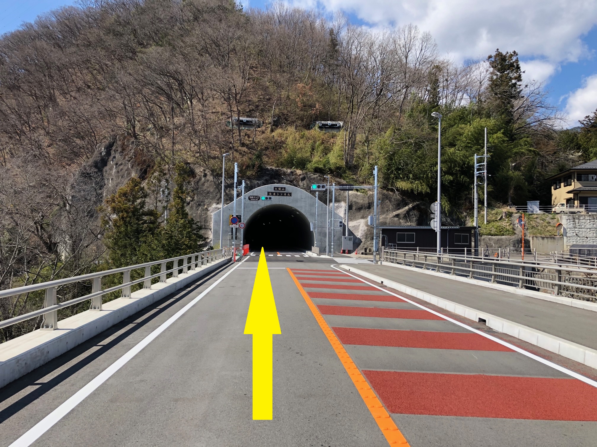 トンネルを出たらすぐに 右折レーンへ入り右折。